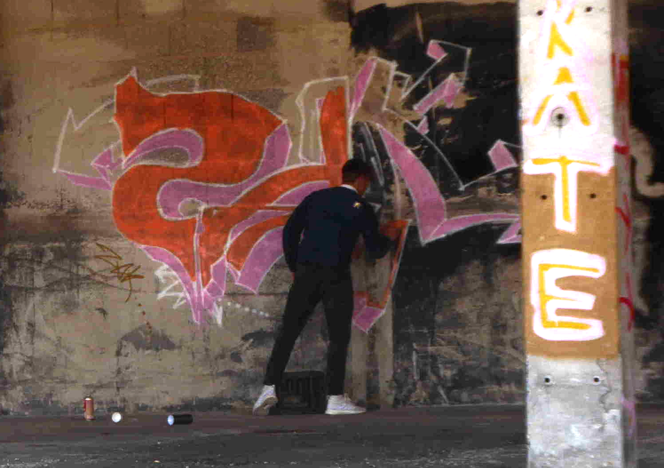 spraying, schablone/stencil, plastic wrapping, paste-ups